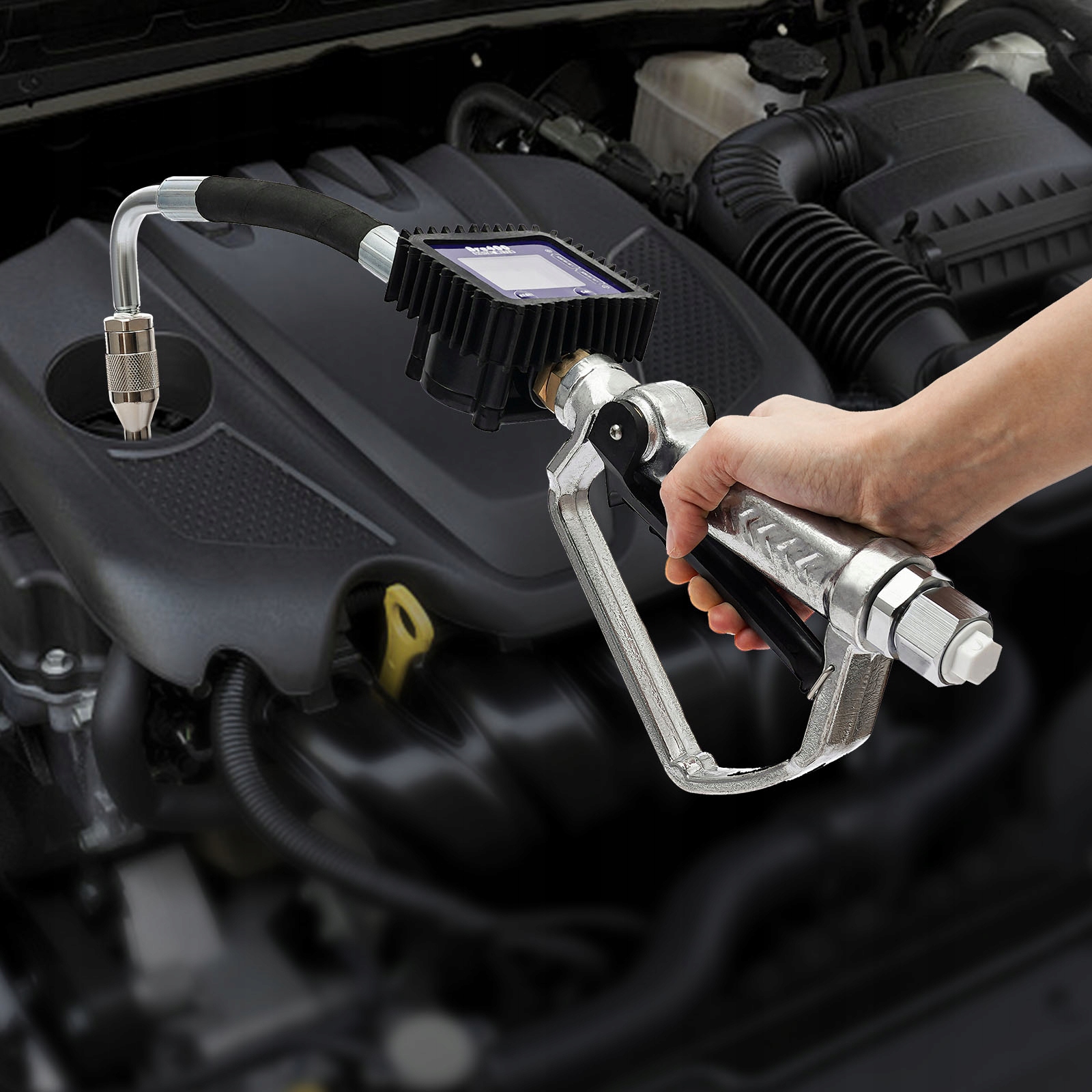 - Электронный пистолет для измерения масла с гибким шлангом и ручным наконечником, с соответствующим разъемом для контроля потока через расходомер. Этот электронный пистолет для контроля уровня масла оснащен 5-значным ЖК-дисплеем, который обеспечивает точный расход масла при заправке. Используется для заправки таких жидкостей, как трансмиссионное масло, моторное масло и антифриз. Это идеальное маслозаправочное оборудование для заводов, заправочных станций и т. д.