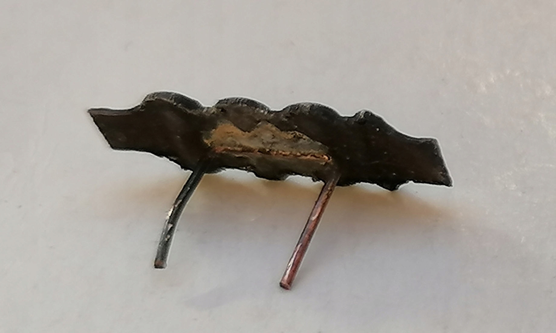 - Крепление - два гнутых металлических усика с шагом около 5 мм.