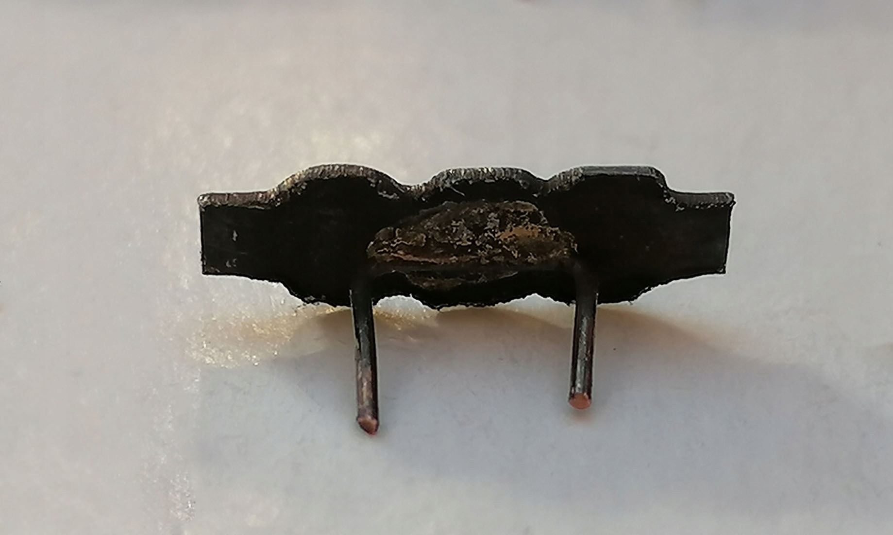 - Крепление - два гнутых металлических усика с шагом около 5 мм.