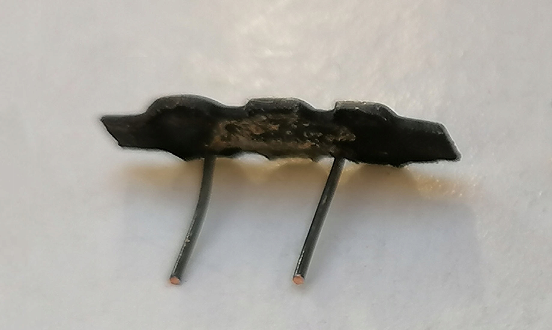 - Крепление - два гнутых металлических усика с шагом около 5 мм.