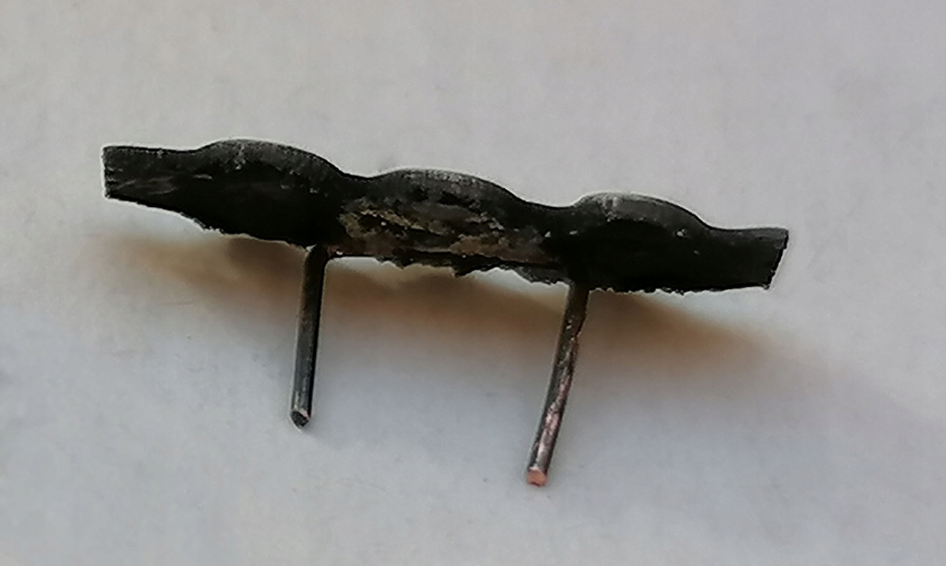 - Крепление - два гнутых металлических усика с шагом около 5 мм.