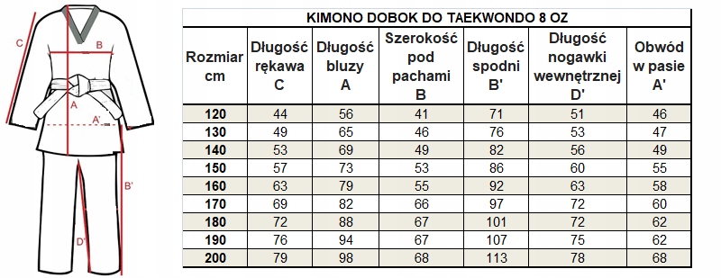 КИМОНО ДОБОК ДЛЯ ТАЭКВОНДО 8 OZ WTF С ПОЯСОМ 130 см