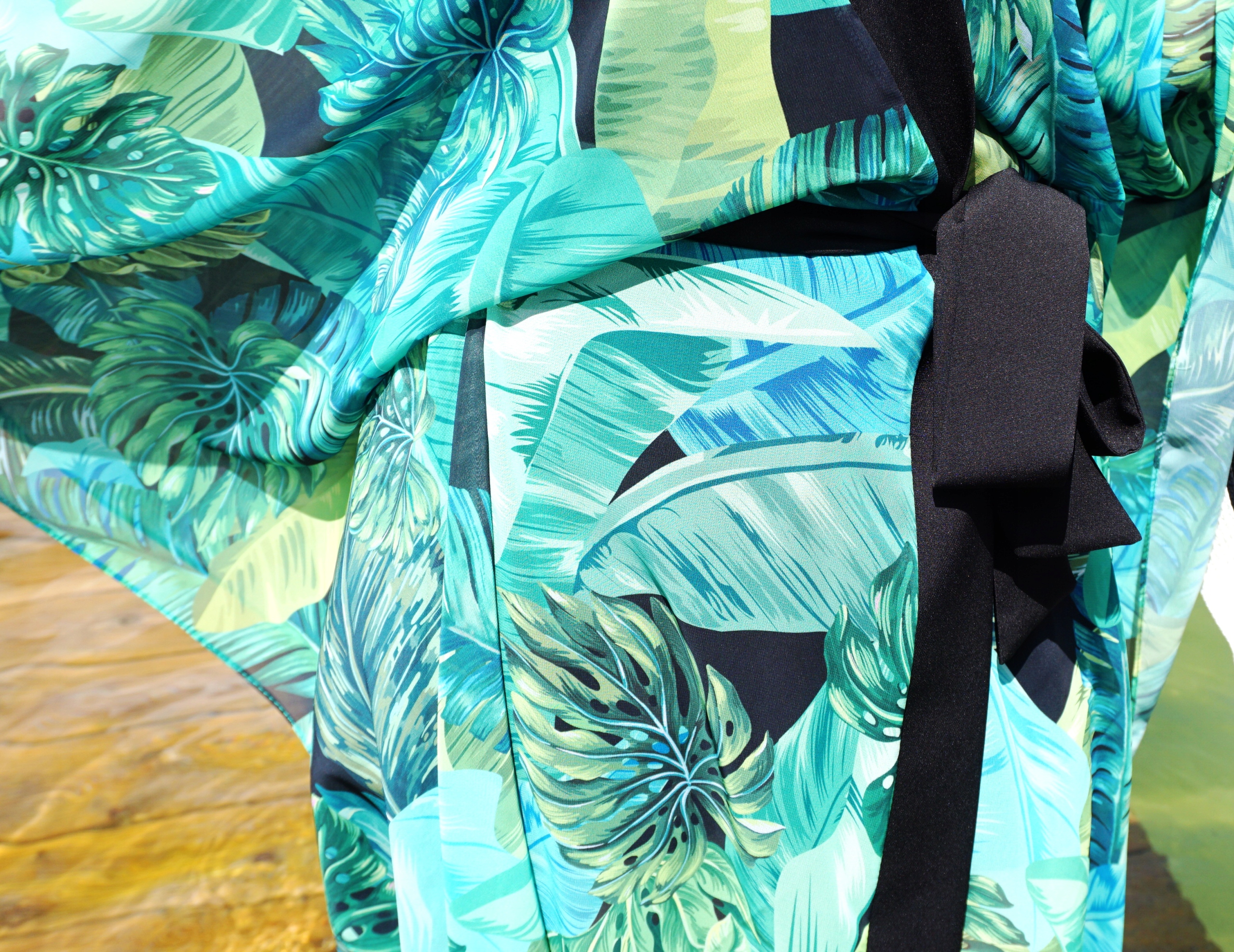 LEAVES пляжное кимоно с преобладанием зеленого цвета.
