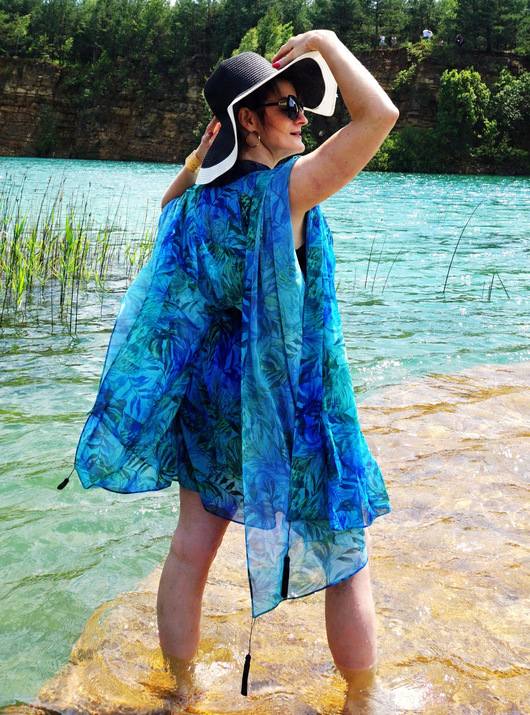 WAVES пляжное кимоно с преобладанием синего цвета.