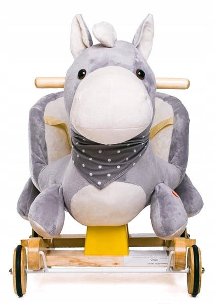 - Игрушка имеет регулируемые ремни. Большое мягкое сиденье обеспечивает комфорт ребенка во время игры. Нежный плюшевый материал вызовет у ребенка не только желание покачаться на нем, но и разовьет осязание.