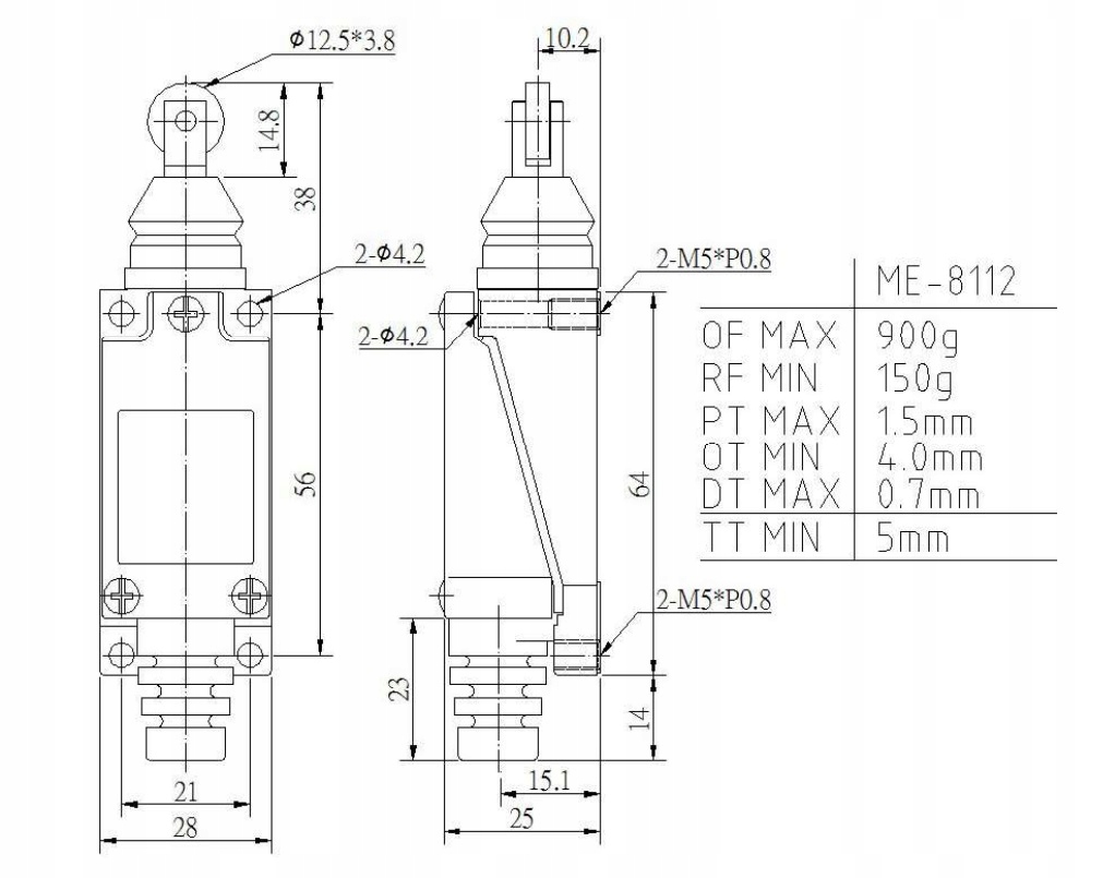 Кінцевий вимикач ME-8112 з роликом fi12,8 мм метал