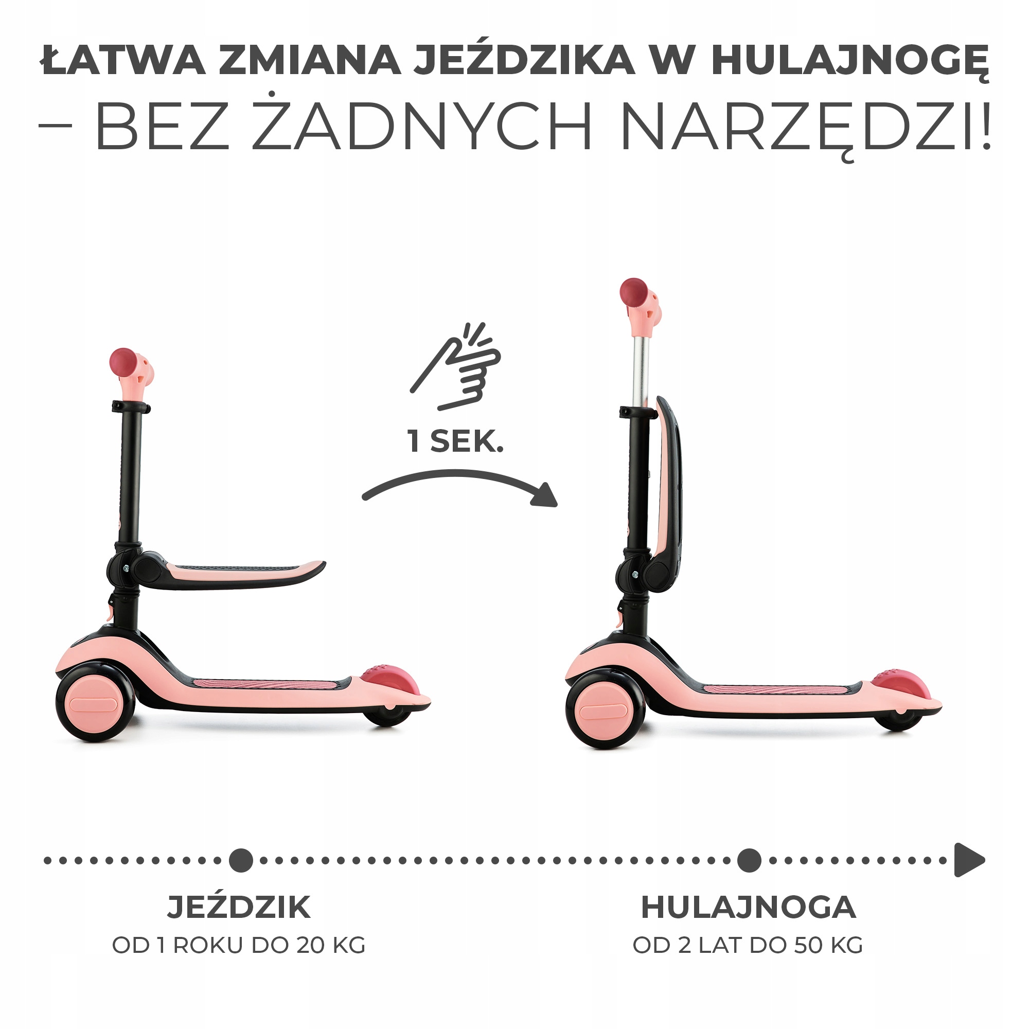 kinderkraft halley, как велосипедная функция, предназначена для детей от года до 20 кг. Вы можете легко превратить велосипед в скутер, который малыш может использовать до 50 кг.