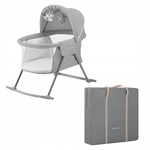 Kinderkraft Kinderbett 3 в 1 LOVI, Kinderreisebett, Stubenwagen, Babywiege, Baby Wippe, Zusammenklappbar, Einfach Transport, mit Zubehör, Tasche, Moskitonetz,von Geburt bis 9 кг, Grau
