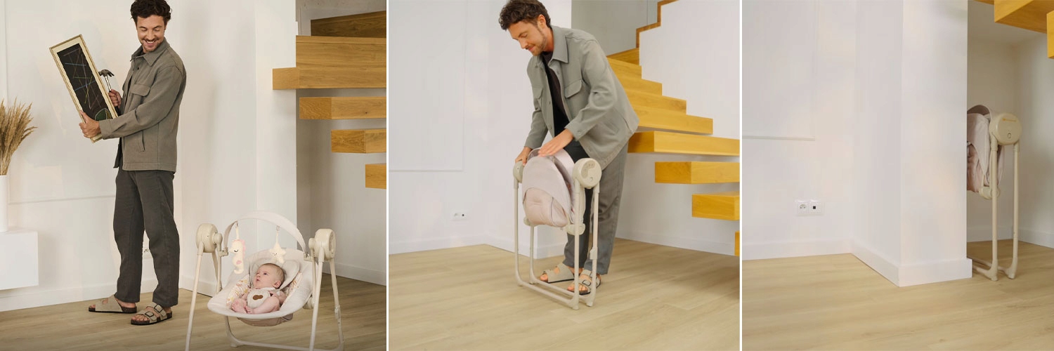 При весе всего 3,7 кг и интуитивно понятной системе складывания кресло-качалка Kinderkraft Swingee станет идеальным компаньоном для повседневных задач — как дома, так и в путешествии. В сложенном виде он занимает минимум места, что упрощает его хранение и транспортировку. Это практичное решение для родителей, которые ценят мобильность и комфорт.