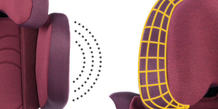 Система H-Guard расположена в подголовнике, который Трехслойный и состоит из пены с эффектом памяти, поглощающей энергию, образующуюся при столкновении. Размещение его в подголовнике не случайно – оно позволяет лучше защитить голову и шею ребенка.