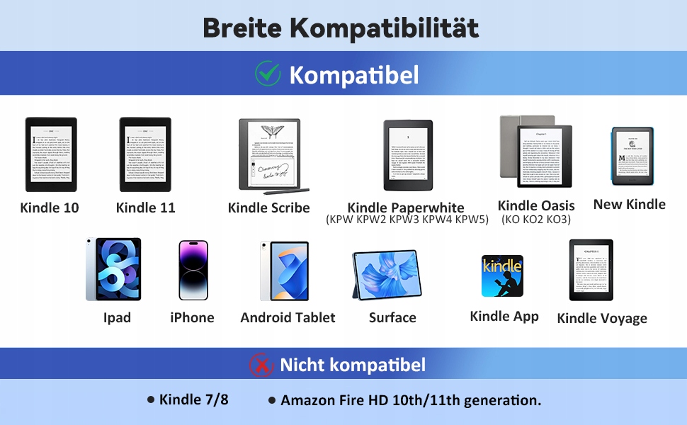 Широкая совместимость Универсальный конвертер страниц подходит для различных электронных книг с емкостным экраном, вы можете наслаждаться беспроводным перелистыванием. Такие как Kindle 10, Kindle 11, Kindle Scribe (KS), Kindle Paperwhite (KPW KPW2 KPW3 KPW4 KPW5), Kindle Oasis (KO KO2 KO3), Kindle Kids Edition, iPad, iPhone, планшет на базе Android, смартфон, Surface, приложение Kindle, Kindle Voyage и т. д.