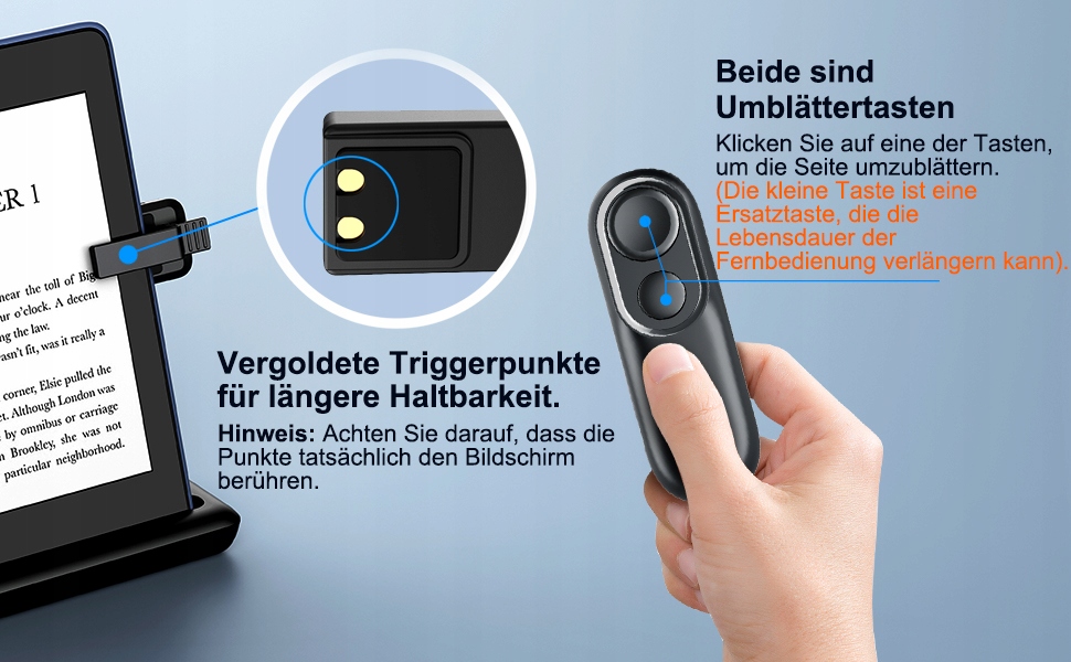 ЭРГОНОМИЧНЫЙ ДИЗАЙН Этот флиппер имеет эргономичный дизайн, который не устанет, если вы держите его в течение длительного времени, и помогает исправить позу при чтении. Он также оснащен подсветкой и кнопкой отключения звука для удобного чтения в ночное время. (Длительное нажатие и удержание 3 секунды для включения, затем короткое нажатие для выключения)