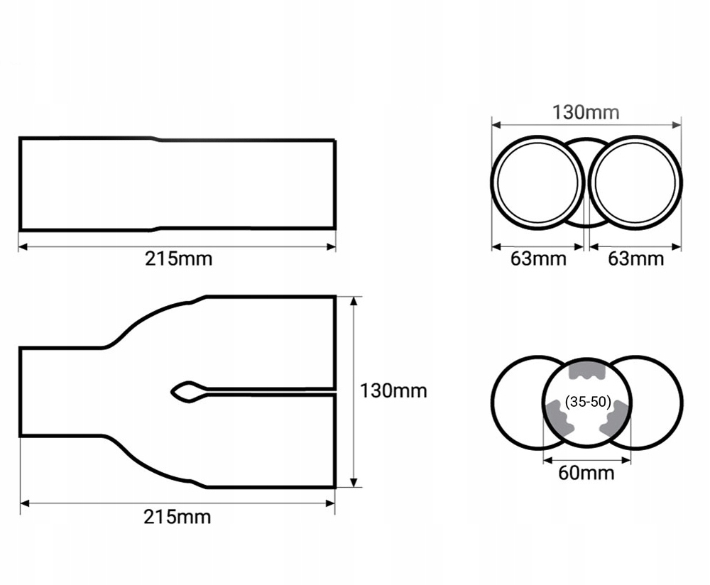 - Установочный диаметр: 35 - 50 мм (диаметр оригинальной выхлопной трубы, на которую можно установить насадку)