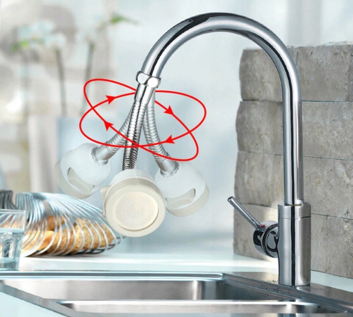 Благодаря возможности направлять струю в любом направлении очень хорошо работает в повседневном использовании при стирке или приготовлении пищи