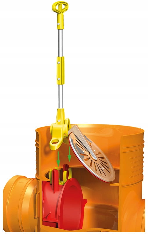Явление обратного потока, происходящее в канализационной системе, приводит к тому, что сточные воды обращаются к зданию и затопляют низкие комнаты. Это может быть вызвано оттаиванием, сильным количеством осадков или наводнением. Во время нормальной работы кинета сточные воды течет свободно, поднимая свободно подвешенный клапан устройства. Во время обратного потока он останавливается лоскутом, прижатым к головке взрыва. Этот процесс полностью автоматически и не требует обслуживания. Синдром клапана устройства постоянно подключен к стержне Chromoniklene с помощью ручки. Это позволяет легко удалить этот элемент из скважины для просмотра и поддержания. После рассмотрения мы легко разместили синдром с лоскутом с палкой в механизме SNAP