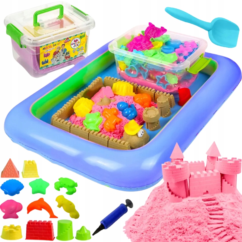 песок разрабатывает ручные способности , поддерживает сенсорную интеграцию и расслабление. Благодаря прикрепленным 18 плесени , насос , лопатки плеч и надувной бассейн , каждый ребенок создаст свой собственный мир, полный замков, дизайнов и приключений!