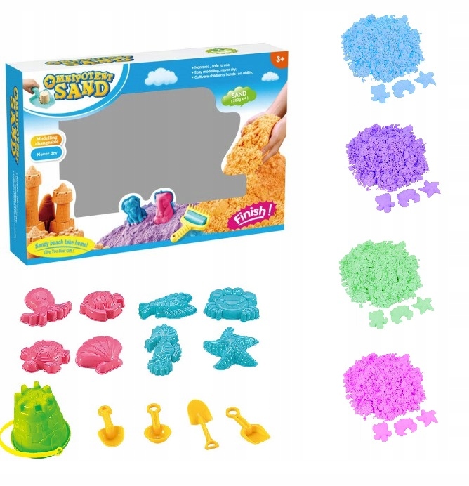 - 800 граммов песка - 4 мешка с песком в разных цветах, каждая 200 г