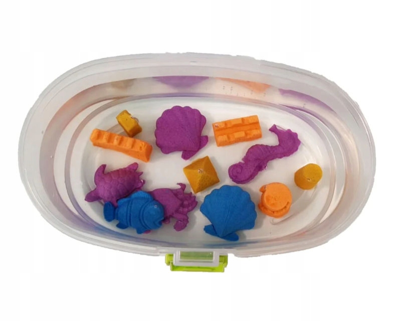 В упаковке с ручкой находится качественный песок. Его отдельные молекулы соединяются друг с другом с помощью связующего, нелипкого вещества. Он чрезвычайно приятен на ощупь. Легко чистить. Сохраняет форму после моделирования. Мы можем играть с ним сухим и мокрым. Закончив игру, просто положите все элементы обратно в упаковку. Набор служит игрушкой-антистрессом. Входящие в комплект формы и аксессуары позволят вам построить замок.