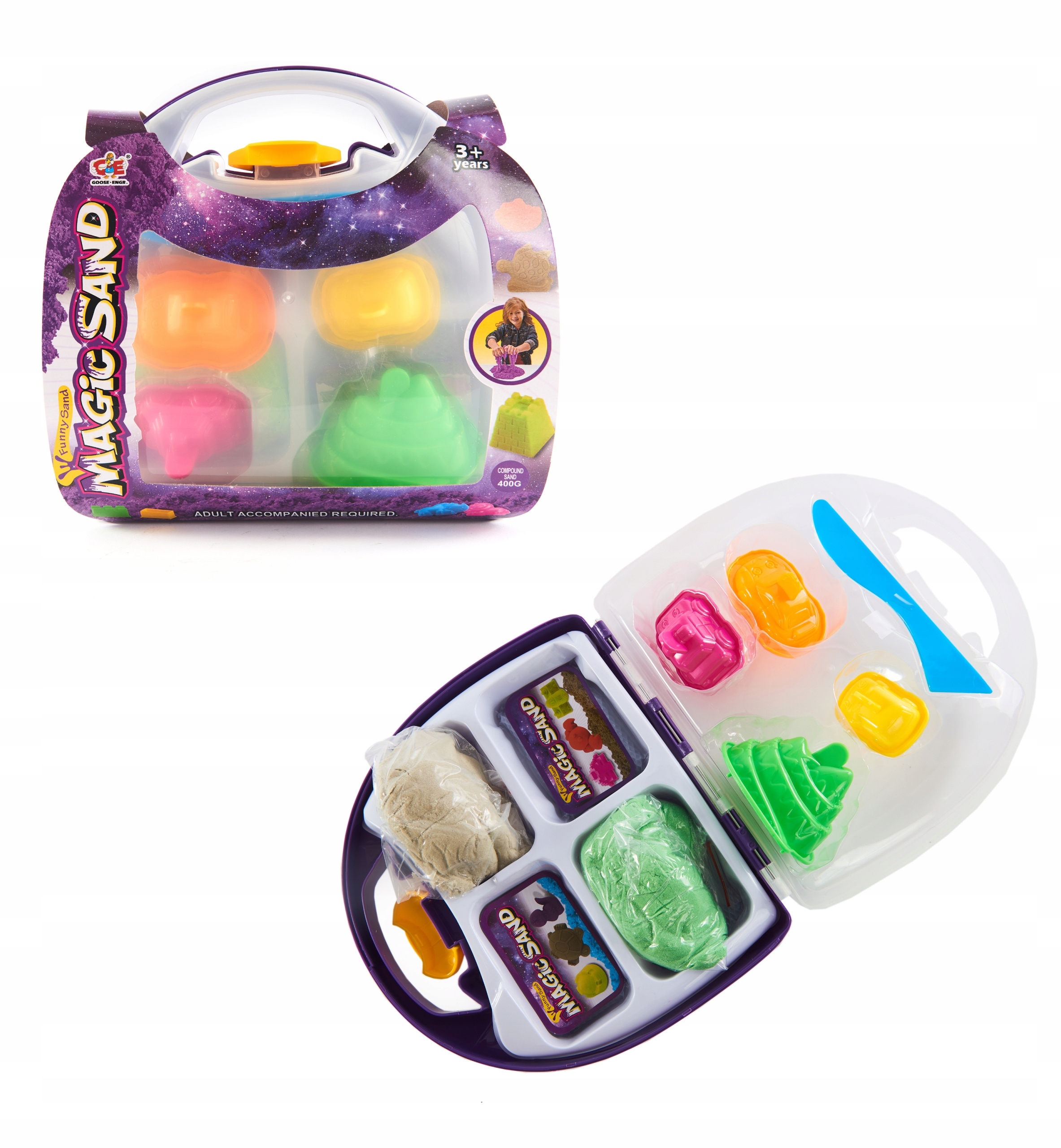 КІНЕТИЧНИЙ ПІСОК У ВАЛІЗІ 400Г КОЛЬОРОВІ ФОРМОЧКИ