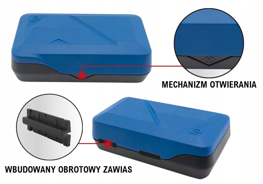 .- Встроенный поворотный шарнир избавляет коробку от выступающих элементов, затрудняющих размещение набора в кармане.