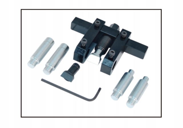 Набор предназначен для расширения поворотного кулака, чтобы обеспечить возможность разборки и установки амортизаторов без риска повредить поворотный кулак, изготовленный из алюминия или чугуна. Устройство полностью регулируемое и предназначено для поворотных кулаков переднего моста как с центральным, так и с нецентральным гнездом. Набор с широким спектром применения, предназначенный для двойных шаровых опор, например, в поперечных рычагах, устанавливаемых на AUDI и VW.