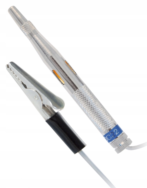 Тестер имеет металлический корпус с рифленой ручкой и встроенным диодом. Иглу зонда защищает специальный металлический колпачок. Прибор предназначен только для проверки постоянного тока. В тестере имеется сменная лампочка.