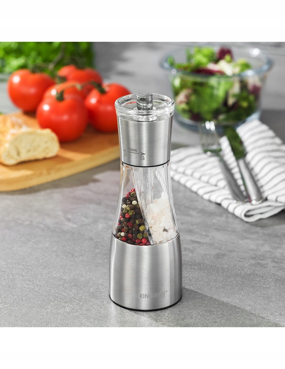 мельница для перца и соли 2 в 1 -й Kinghoff Double -Chamber Duo, предназначен для ручного шлифования перца, соли и других сушеных специй.