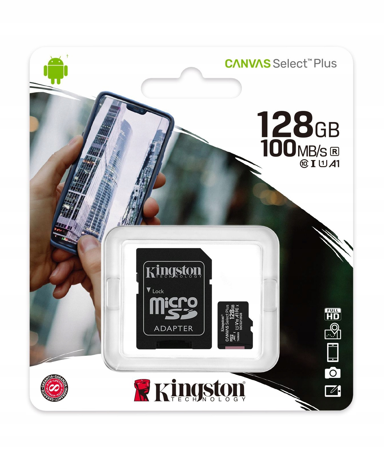 Совершенно новая высококачественная карта памяти Kingston microSD 128 ГБ Canvas Select Plus 100 МБ/с + адаптер.