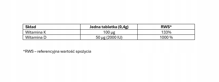 Состав: микрокристаллиновый целлюлозный эмульгатор, связывающий вещество -кальчафосфат, холекальциферол (витамин D), кинон ™ (менахинон -7/витамин К, полученный из сои путем ферментации), карбода -силтицентив -силтицентив -силтицентив -силтицентив -силтицентив -силтицентив -силтицентив -силтицентив -силтицентив -силтицентифика диоксид.