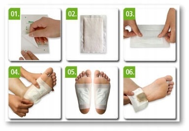 - Патчи следует наносить на ночь примерно на 6–10 часов на обе ноги.