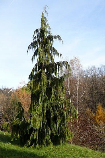 - Хвойное дерево имеет рыхлую форму, которую образуют цельные, изогнутые вниз на концах побеги – со свисающими по всей длине боковыми ветвями.