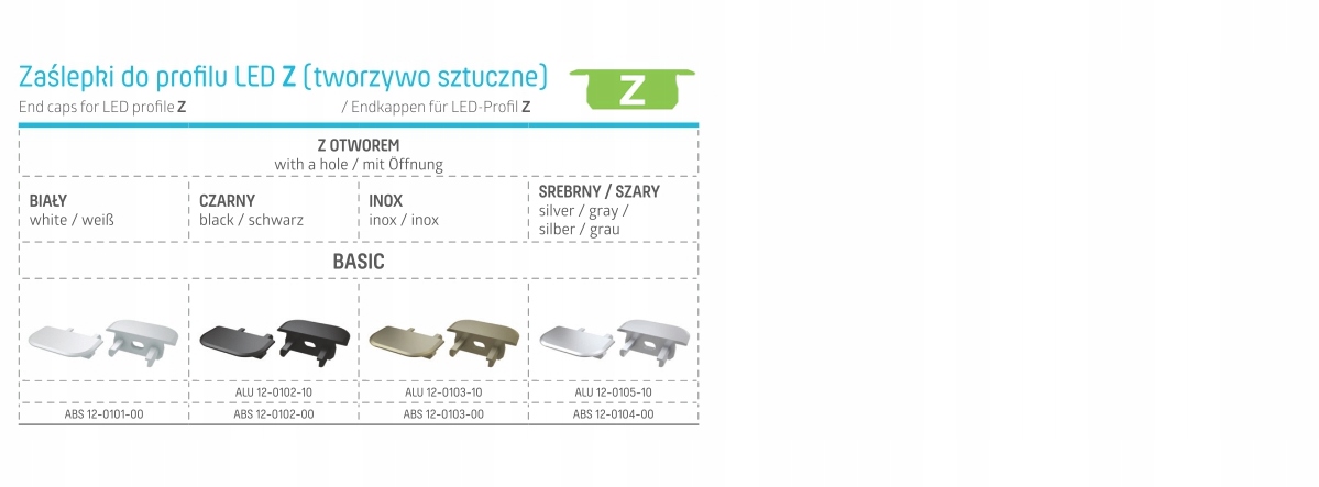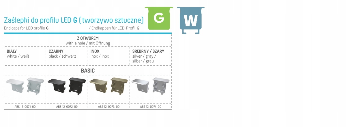 ЗАГЛУШКА ДЛЯ АЛЮМИНИЕВОГО ПРОФИЛЯ A B C D G H X Y Z W