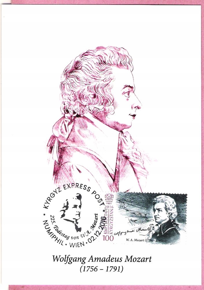 Kirgistan 2016 MC Wien, Wyst.Filat.NUMIPHIL muzyka W.A.Mozart, wyd.200 szt.