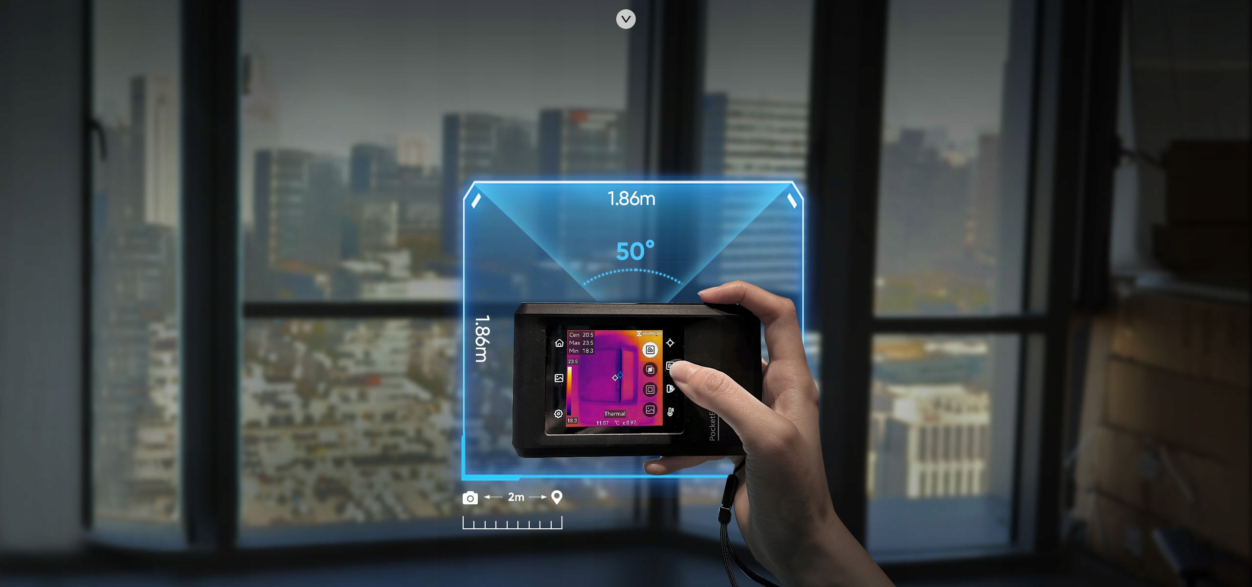 Измерение объекта на большой площади благодаря широкоугольному объективу. Идеально подходит для поиска утечек, тепловых мостов и т. д.