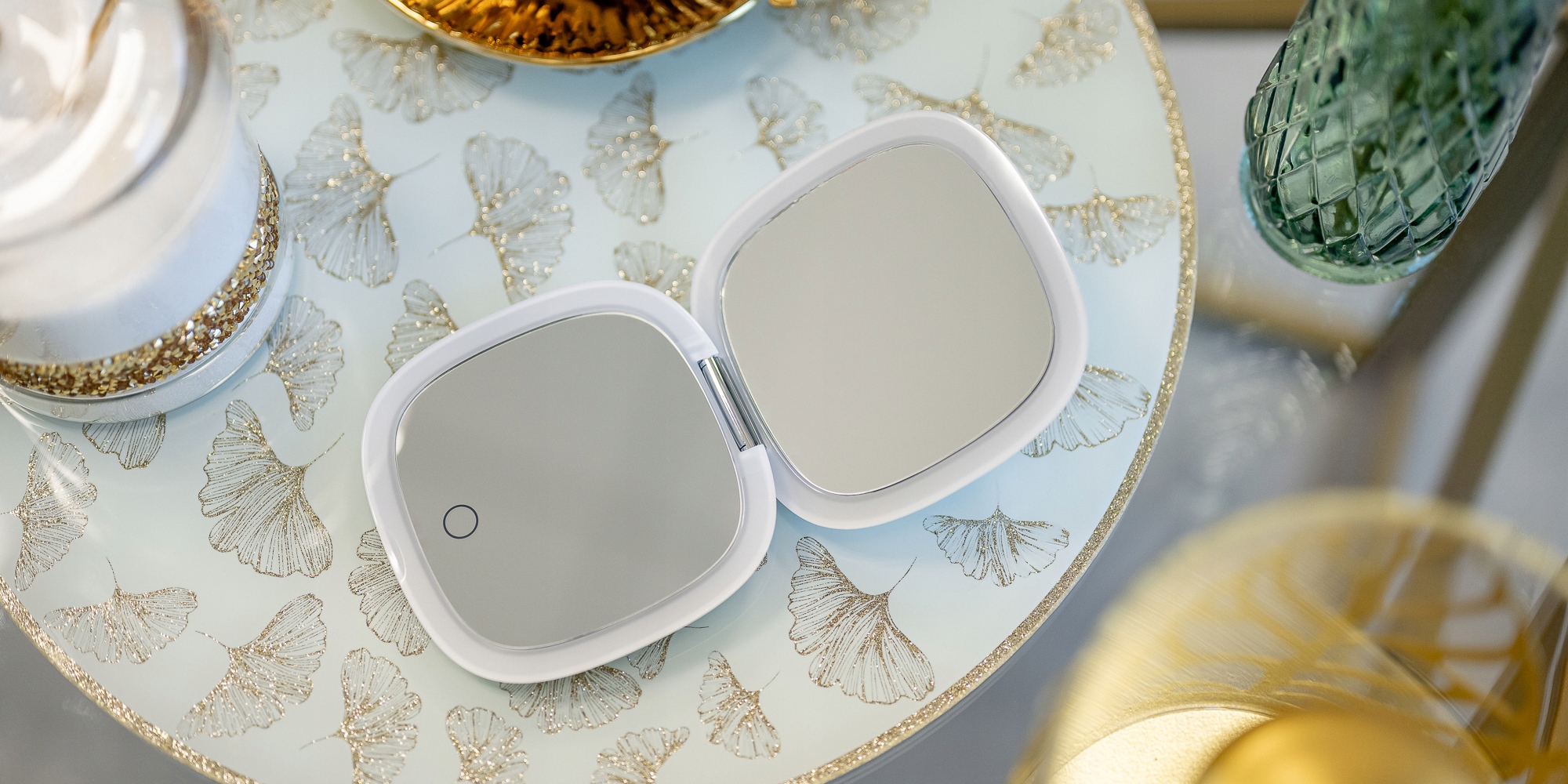- 5-кратный зум верхней поверхности зеркала позволяет увидеть мельчайшие недостатки макияжа.
