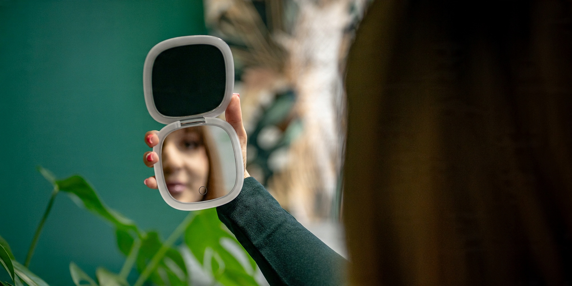 Косметическое зеркало Humanas HS-PM01 со светодиодной подсветкой – идеальный спутник в ежедневном уходе. Благодаря компактному дизайну он поместится в любую сумочку, а когда понадобится, его можно будет открыть, как элегантную компактную сумку. Верхняя и нижняя поверхности зеркала оснащены подсветкой, что обеспечивает оптимальные условия освещения, независимо от того, где вы находитесь. Вы можете плавно регулировать мощность света и выбирать один из трех вариантов цветовой температуры. Кроме того, зеркало позволяет оптимально регулировать угол наклона до 160°. Вы можете быстро зарядить встроенный аккумулятор с помощью кабеля micro USB. Это чрезвычайно практичное косметическое зеркало, которое позволит вам нанести идеальный макияж в любой ситуации.