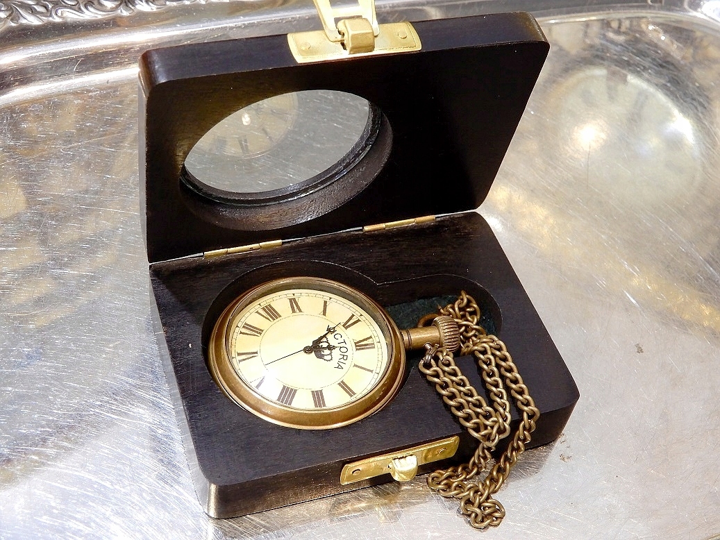Часы из латуни с шармом в деревянной коробке - реплика часов