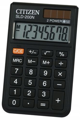 Калькулятор карманный SLD-200N CITIZEN 8-значный/98х60мм - черный. Калькулятор с 8-значным дисплеем, система двойного питания (солнечная батарея и батарейки), размеры: 98x60x10 мм, функция квадратного корня и процента, оснащен кнопкой смены знака, автоматически отключается. Гарантия 2 года. Цвет: черный