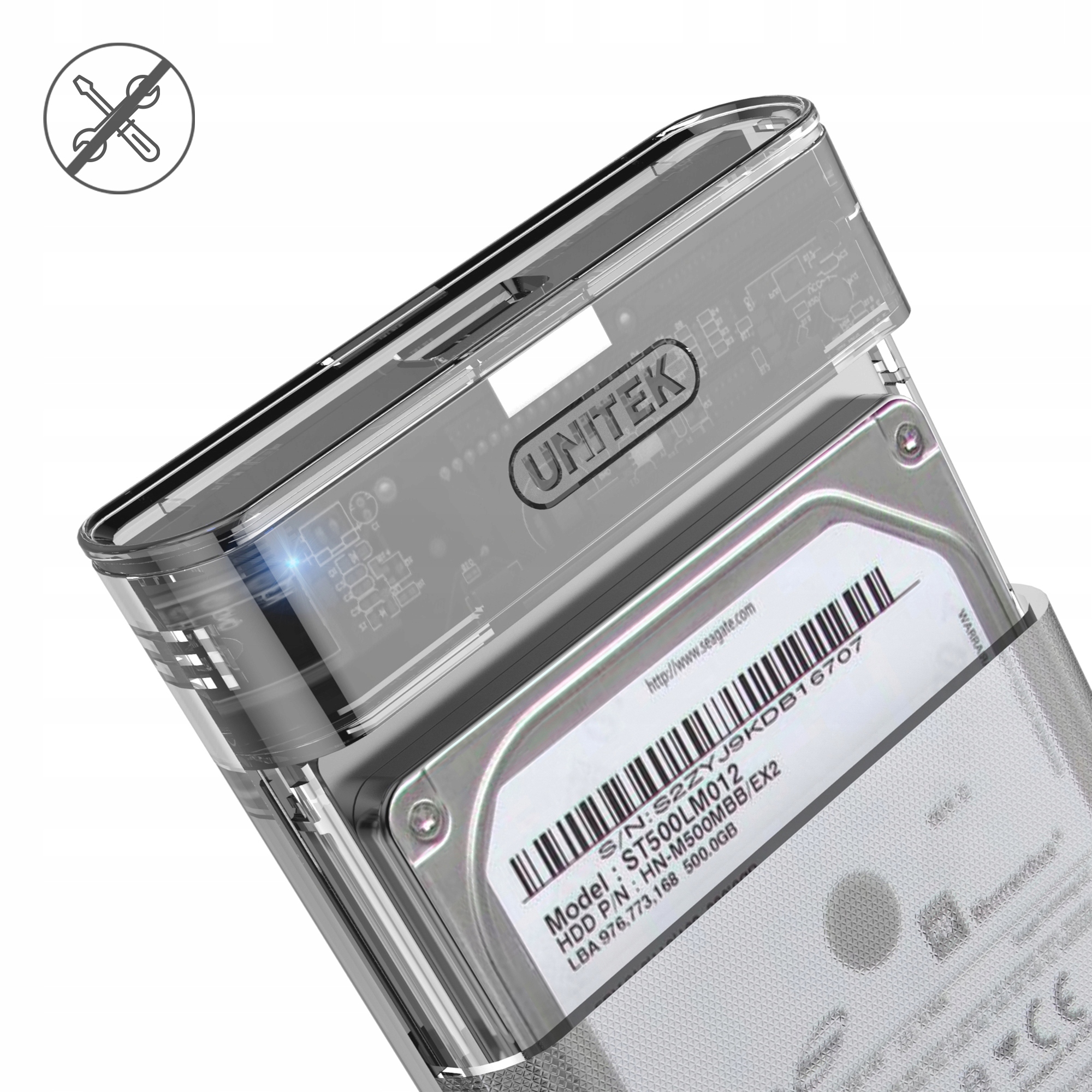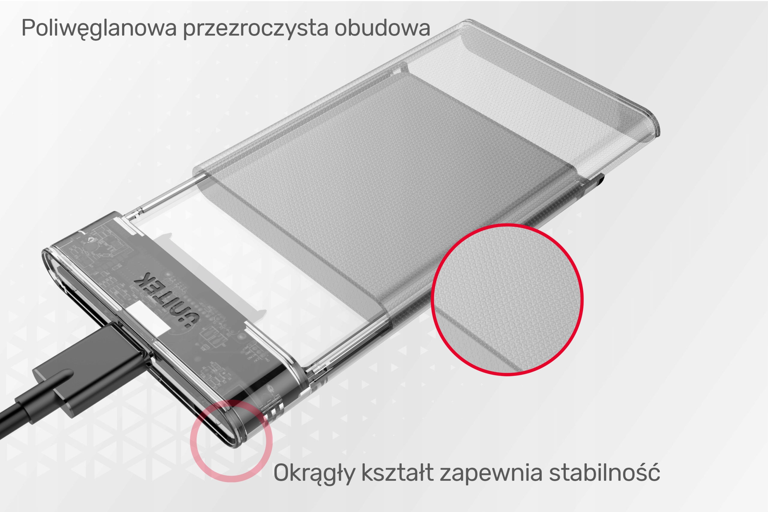 Корпус разработан таким образом, чтобы вам не нужны какие -либо инструменты для замены монтированного диска. Благодаря быстрому соединению вы можете изменить диск на новую модель в будущем, не покупая новый адаптер. Основной непосредственно из порта USB, не требуется носить неудобные сетевые питания. Кроме того, мост оснащен технологией Plug & Play, поэтому диск не нуждается в дополнительных драйверах. Эта модель корпуса отличается тем фактом, что она сделана из прозрачного пластика, с помощью которого вы можете увидеть интегрированные цепи и тип установленных дисков.