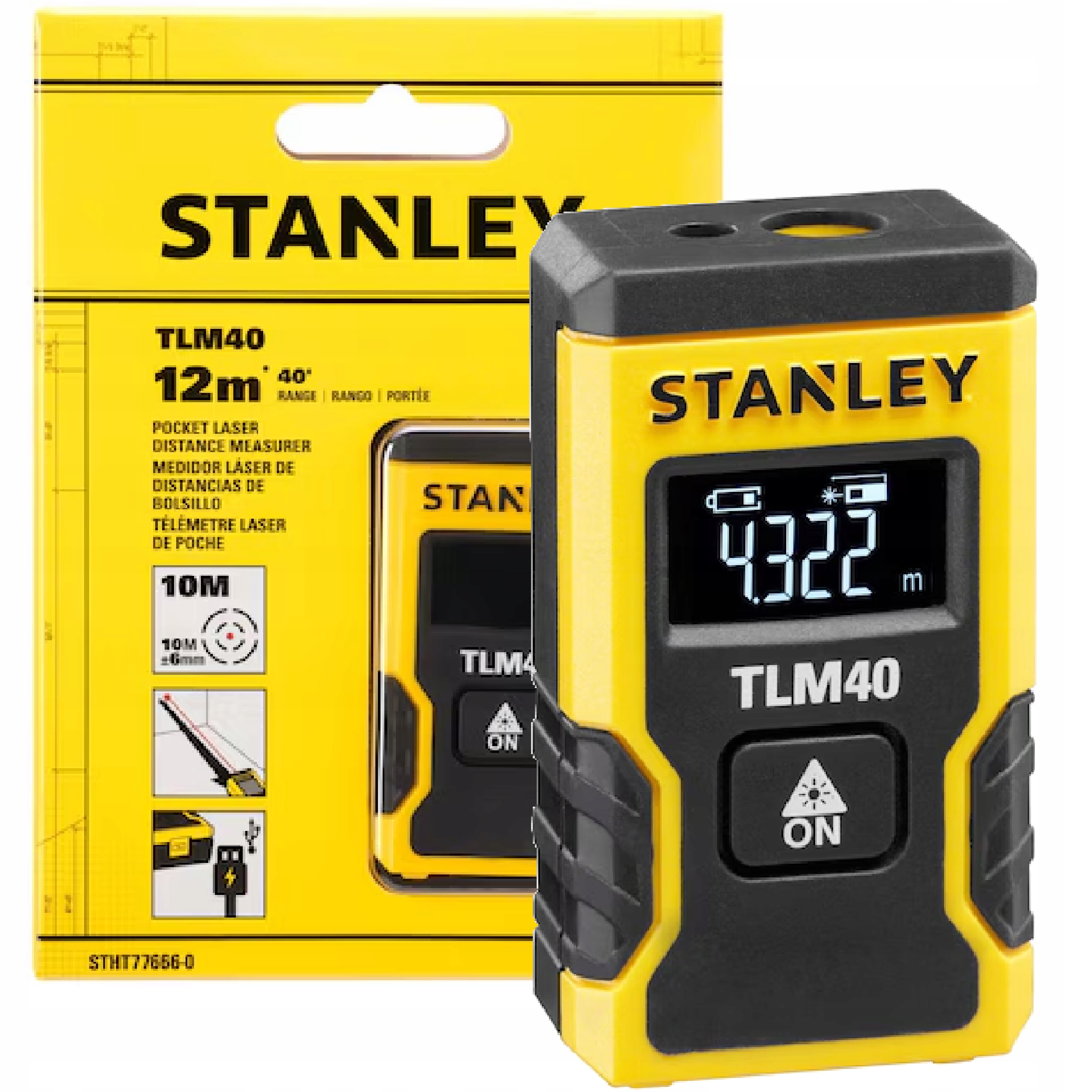 КИШЕНЬКОВИЙ ЛАЗЕРНИЙ ДАЛЬКОМІР ДЛЯ ПОМІЩЕННЯ 12M TLM40 STANLEY STHT77666-0