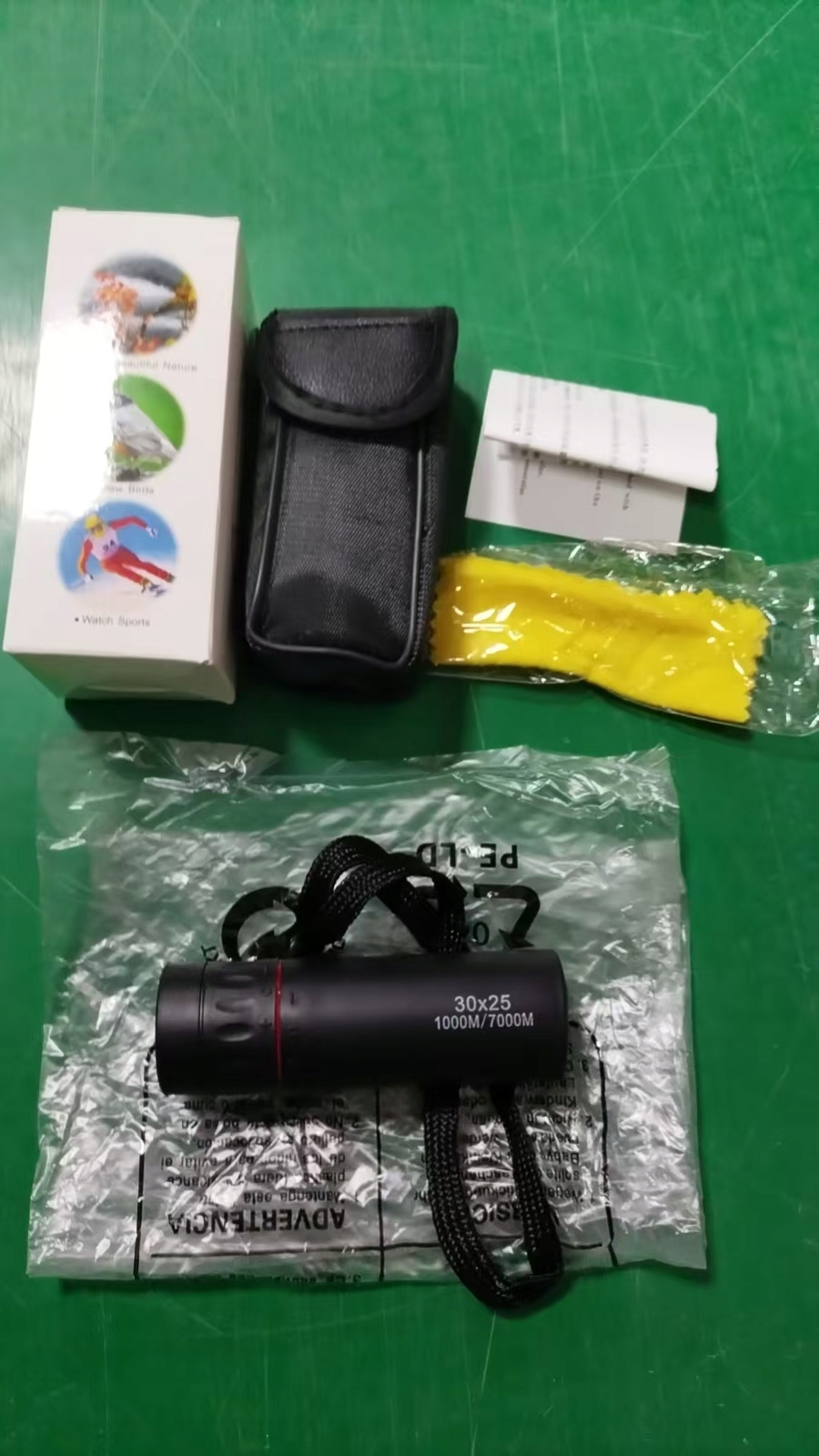 Особенность:1. Монокуляр высокой мощности 30x25: Благодаря 30-кратному увеличению и диаметру объектива 25 мм этот портативный монокуляр поможет вам четко видеть удаленную цель.
