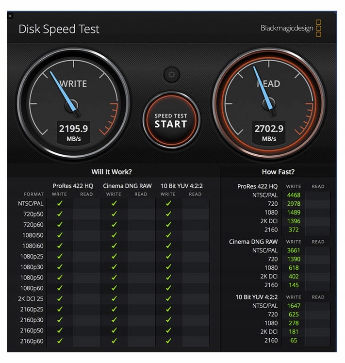 Представляем скорости записи и чтения данных, полученных с помощью накопителя Samsung 980 Pro емкостью 1 ТБ, подключенного заводским кабелем к Apple MacBook Pro 14 M2. . Мы получили следующие результаты: 2195 МБ/с (запись) и 2702 МБ/с чтение.