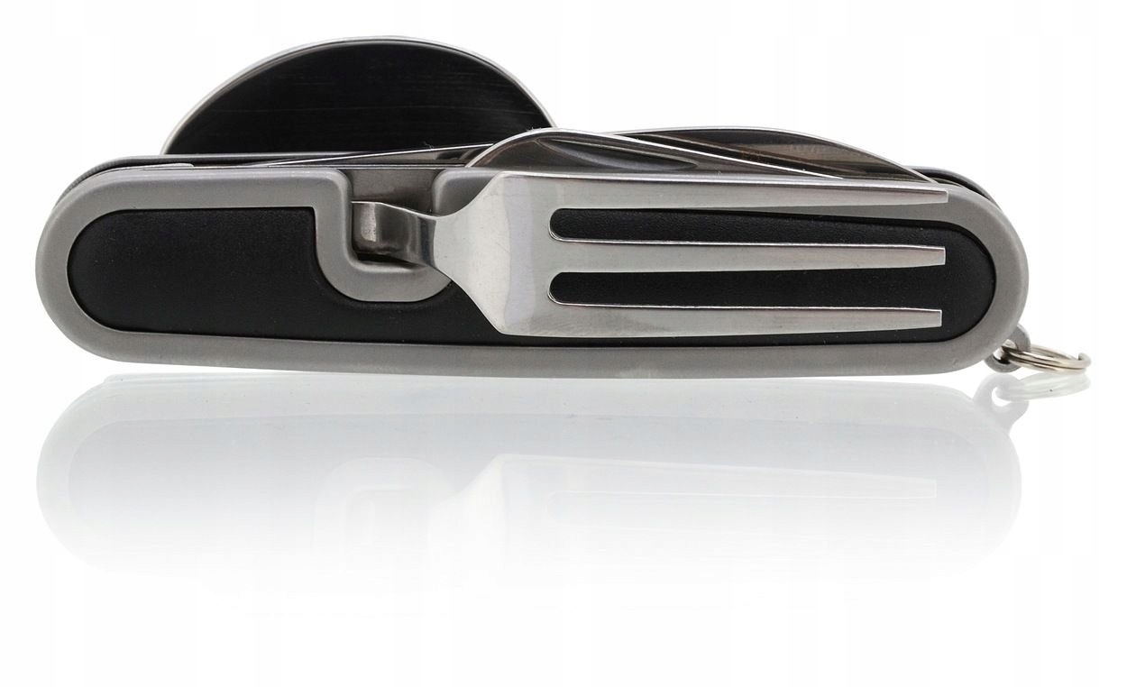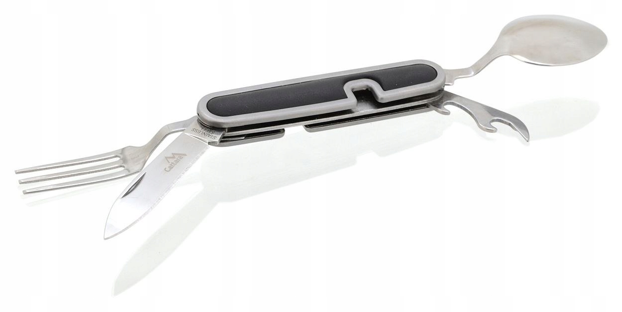 Складной нож, стр. Чистый помощник для кемпинга и других видов активного отдыха. Нож изготовлен из целла, а рукоятка дополнена вставками из мягкого пластика, что делает крепление более удобным. Нож разделен на две части и выдвинут вперед. Первая часть состоит из вилок, консервных ножей и крышек для бутылок, вторая часть состоит из ложки и самого лезвия ножа. Лезвие изготовлено из режущей стали 420J1, твердость HRC45-48, последние инструменты изготовлены из режущей стали 420J2. Оба материала подходят для сложных условий, где они характеризуются коррозионной стойкостью. Нож также оснащен кольцом для крепления, например брелоком. Однако благодаря своим небольшим размерам он поместится в кармане. Технические данные: