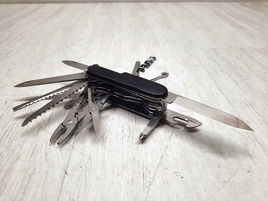 Погрузитесь в мир функциональности с Victorinox Swiss Champ — легендарным швейцарским армейским ножом, созданным для самых требовательных пользователей. Эта многофункциональная модель в элегантном черном исполнении предлагает целых 33 инструмента, благодаря которым она может справиться практически с любой ситуацией – от простого ремонта до задач выживания.