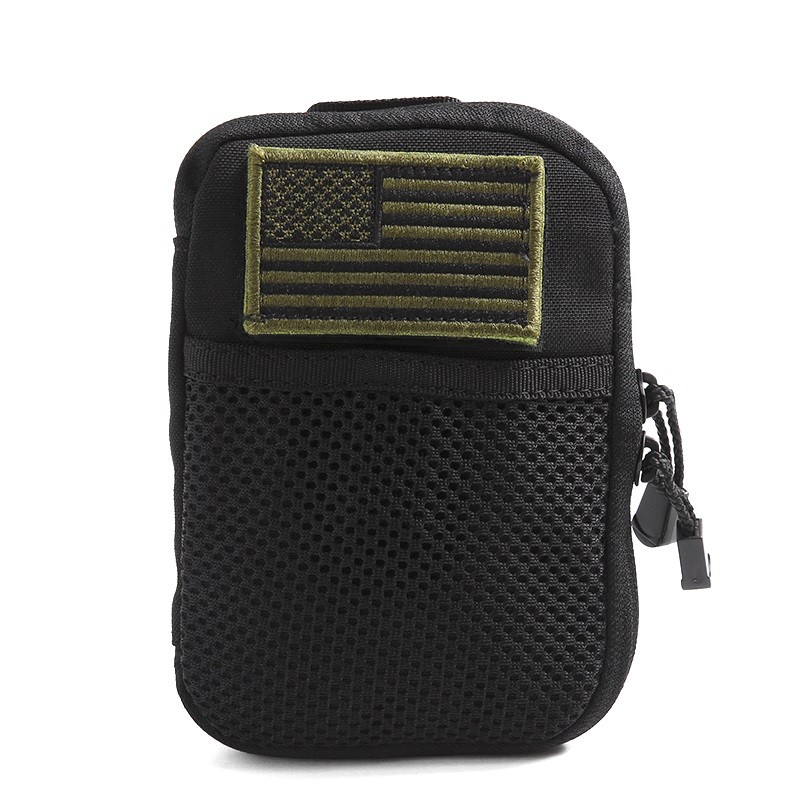 В комплект входит нашивка с флагом США. Подсумок крепится к снаряжению, рюкзаку или ремню двумя вертикальными ремнями.