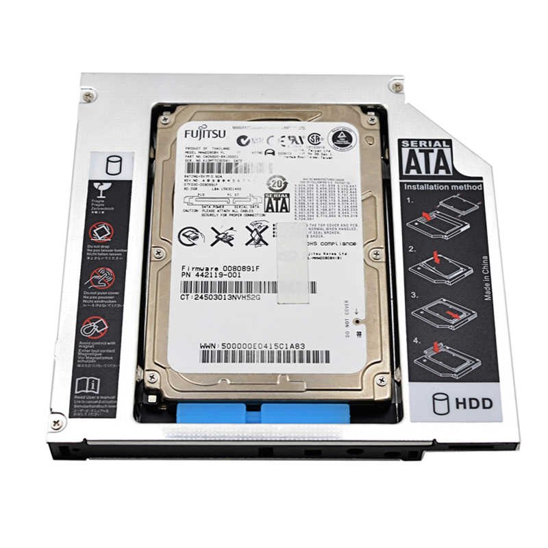 Алюминиевый карман для 2,5-дюймового SATA HDD монтируется в штатное место установки SATA CD/DVD станции в ноутбуке Карман стандартен и совместим с большинством ноутбуков, доступных на рынке (высота 9,5 мм).