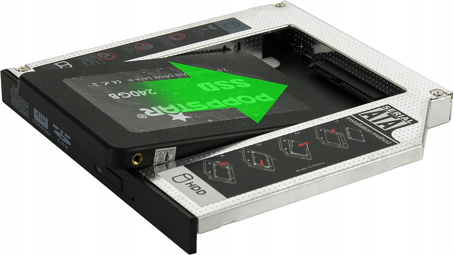 Мы представляем алюминиевый карман для второго 2,5" HDD/ SSD SATA с высотой 12, 12 , 7 мм, установленный на стандартный привод CD/DVD в ноутбуке. Идеальное решение для пользователей, которые нуждаются в дополнительном диске в своей ноутбуке. Благодаря простой установке и высокой совместимости, вы быстро увеличите функциональность вашей ноутбука