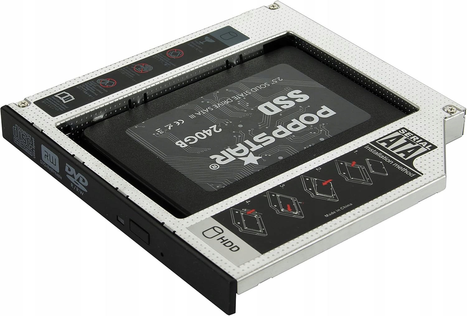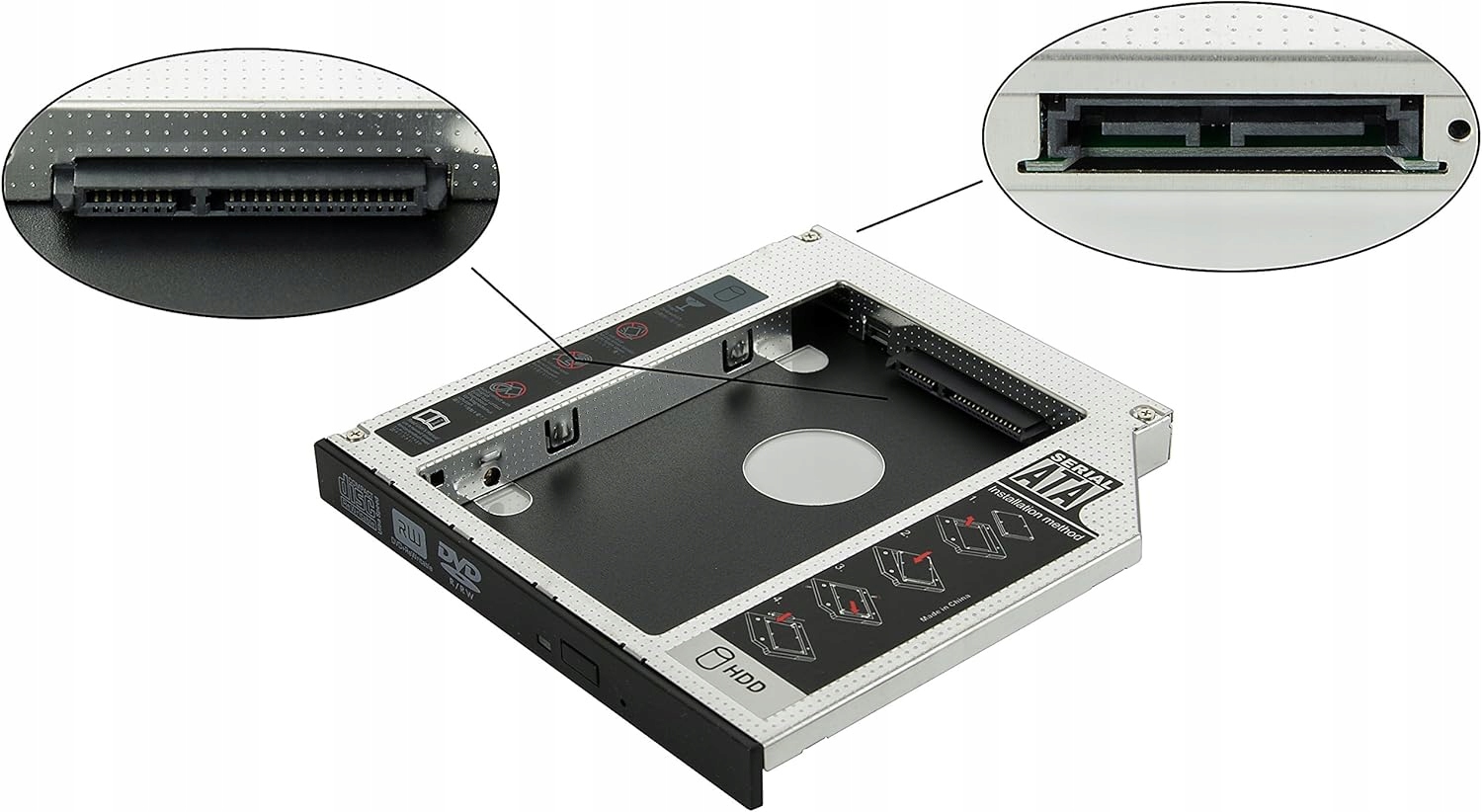 Мы представляем алюминиевый карман для второго 2,5" HDD/ SSD SATA с высотой 12, 12 , 7 мм, установленный на стандартный привод CD/DVD в ноутбуке. Идеальное решение для пользователей, которые нуждаются в дополнительном диске в своей ноутбуке. Благодаря простой установке и высокой совместимости, вы быстро увеличите функциональность вашей ноутбука