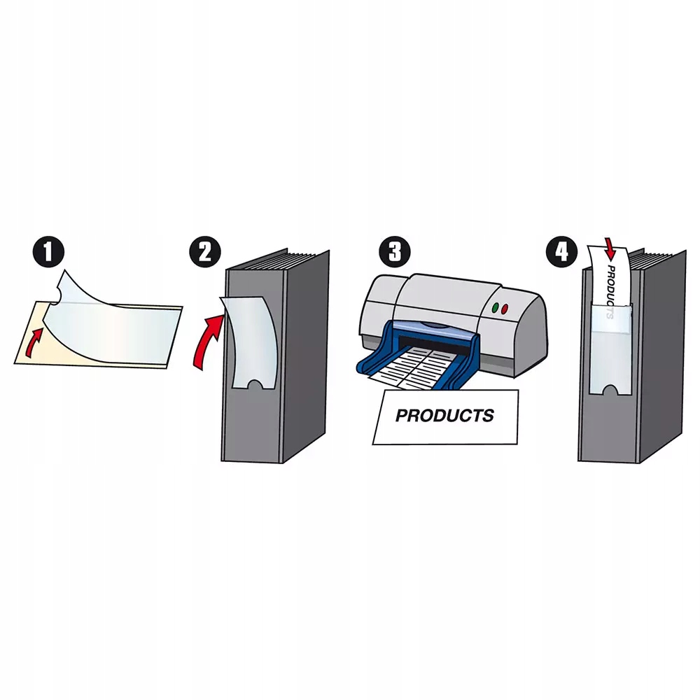 Карман самоклеящийся 3л с этикетками 25 х 75 мм для маркировки скоросшивателей и ящиков для документов. 12 штук.