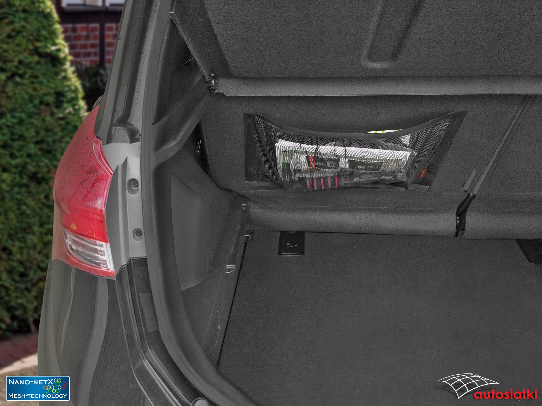 Это прочная сетка Nano-NetX, отделанная лентой-липучкой снизу и по бокам. Прорезиненный верх для защиты аксессуаров от перемещения. Используемый материал Mesh-Technology защищает даже небольшие предметы от выпадения. Карман крепится к коврику в багажнике или салоне автомобиля.